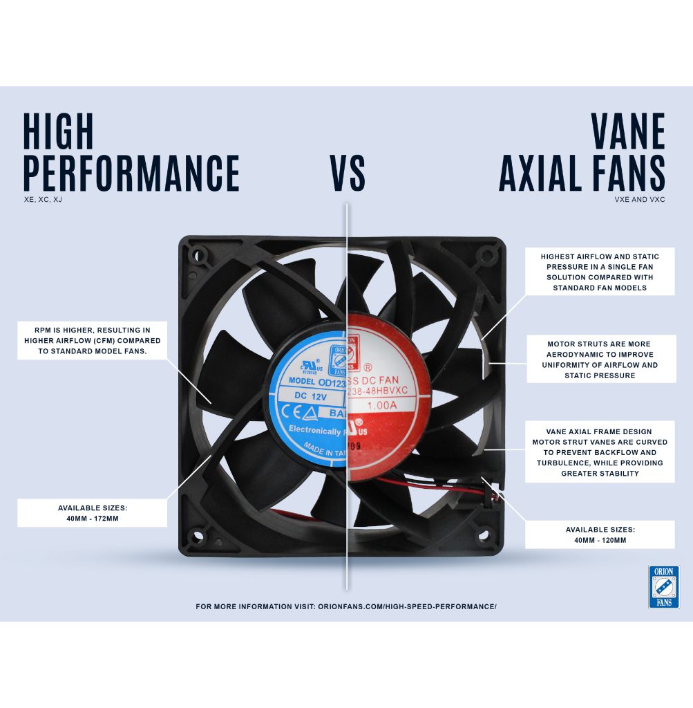 One page that compares our standard high performance fans to our vane axial.
